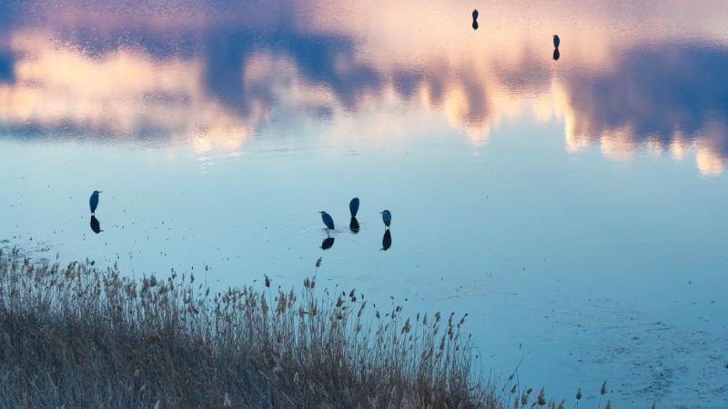 湿地迎来成群白鹭