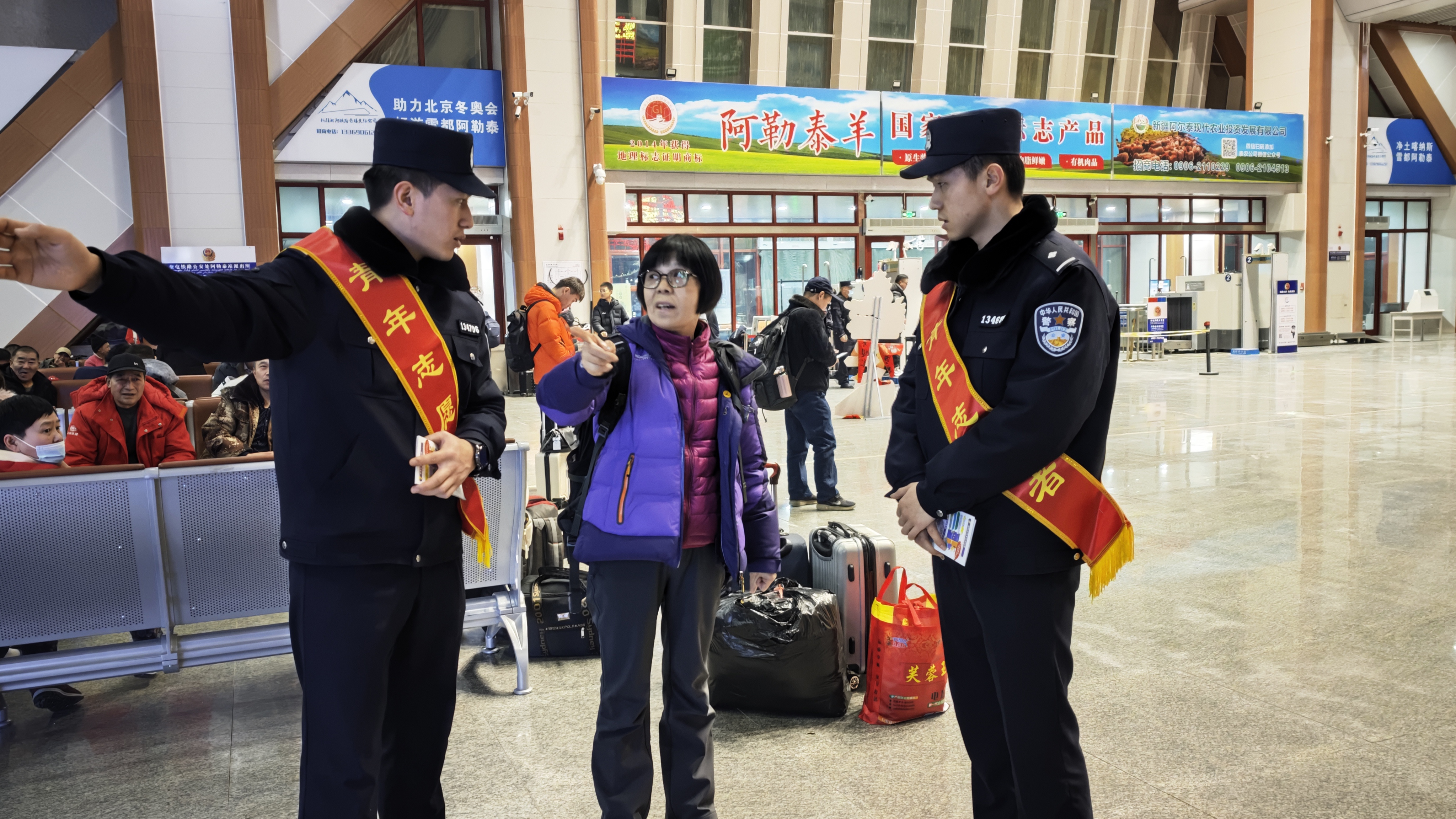 阿勒泰新闻网-阿勒泰地区融媒体中心(记者 古扎丽·阿布都热西提 通讯员 李豪)为全力营造“平安、便捷、温馨”的春运氛围,让每一位旅客都能体验到美好的出行之旅和浓浓的年味,连日来,乌鲁木齐铁路公安局奎屯公安处阿勒泰站派出所开展了“热血暖冬志愿心 雪都铁警显真情”志愿服务活动,确保春运期间安全顺畅。