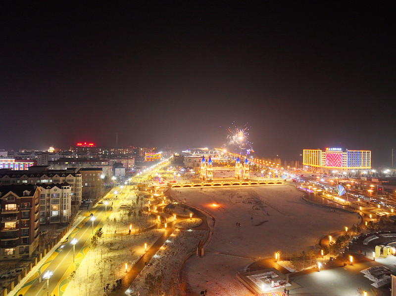 一朵朵五彩缤纷的烟花在上空竞相绽放时,有的像鲜花盛开,有的如繁星点点,有的如巨大的伞花,为来年的生活添了几分好彩头。“今天带着家人来到七彩河看烟花,特别漂亮。新的一年里,希望我的家乡越来越好,每一个人都能幸福安康。”布尔津县居民吴继虎说。