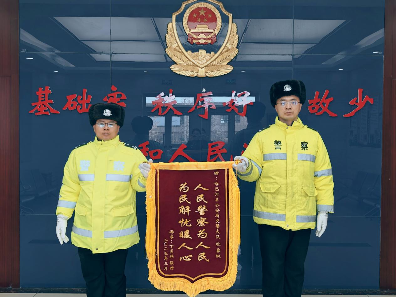 这面锦旗背后的暖心故事还要从3月7日说起。哈巴河县公安局接到群众求助电话称:“我们车辆陷入雪坑了,希望得到救援。”此时的白哈巴村正处于强降温风雪天气,道路能见度低,室外温度低至零下20度,民警考虑到群众受困时间较长,担心有生命危险,立即携带救援工具前往事发地点开展救援工作。