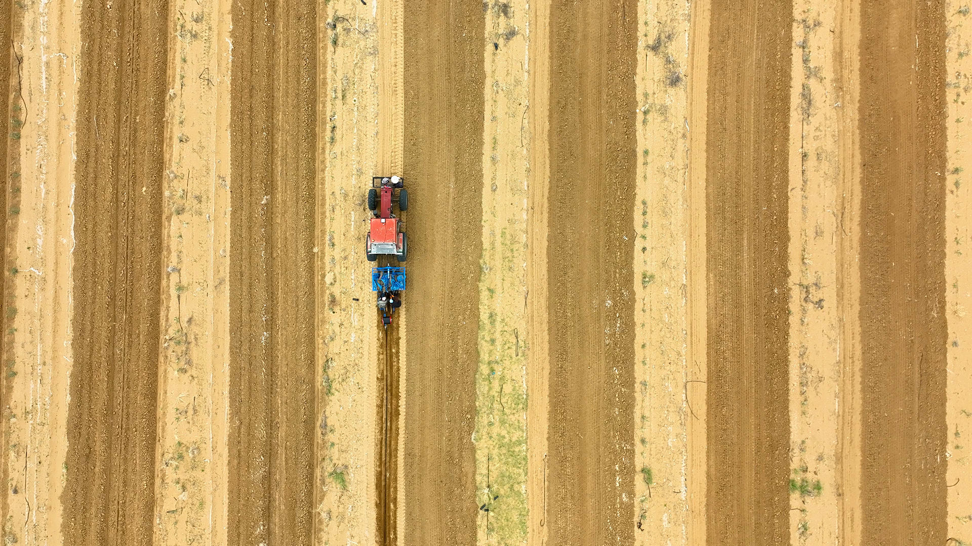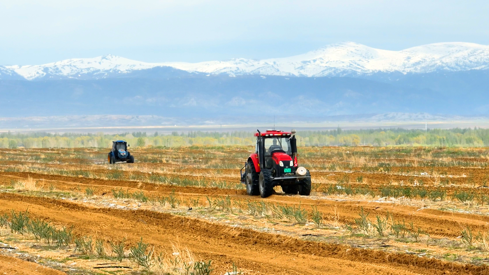 康元生物集团3000亩沙棘种植基地,三台新型种植机忙碌作业。