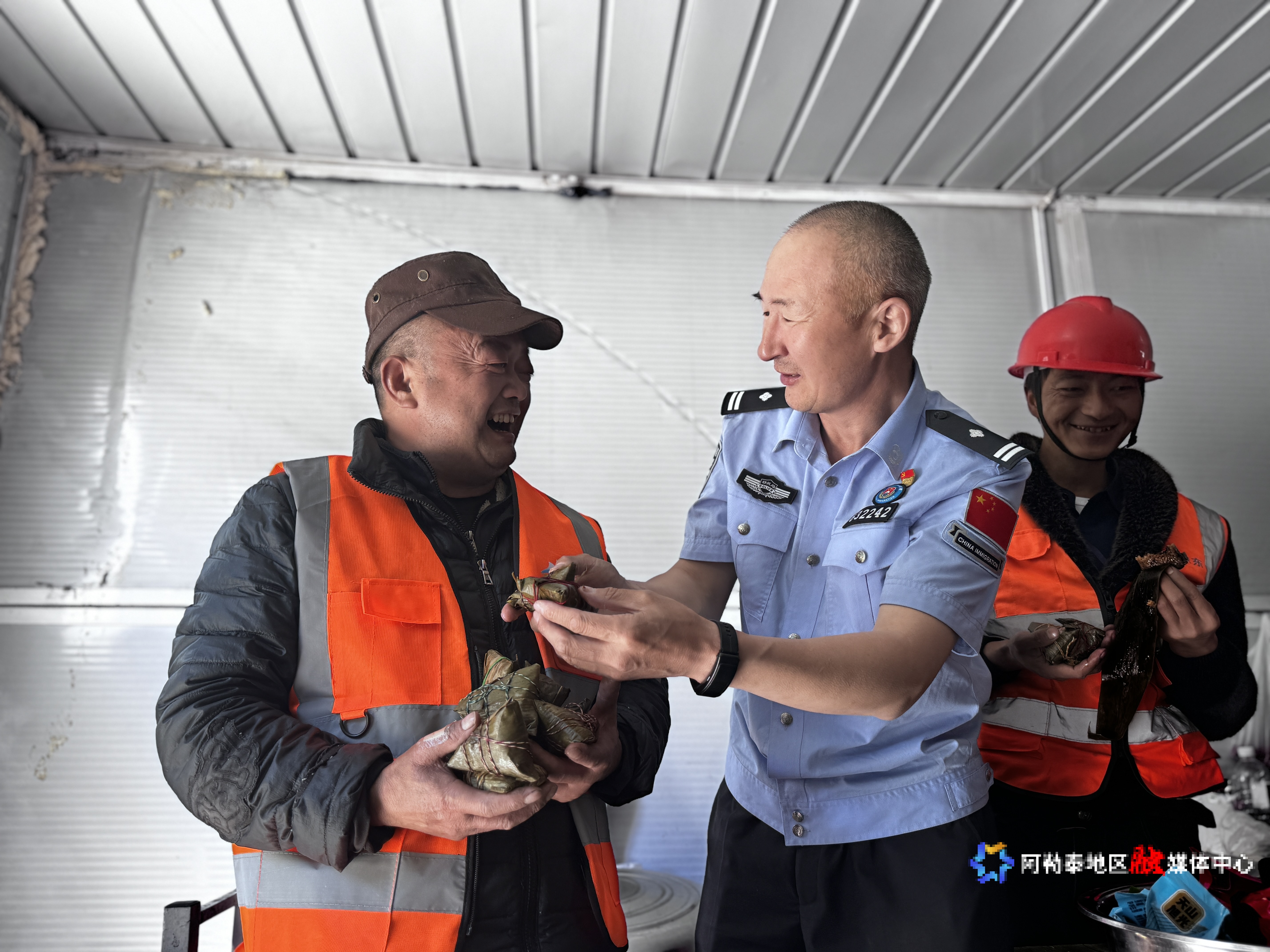 阿勒泰新闻网-阿勒泰地区融媒体中心(实习记者 王景鸿 通讯员 杨超)5月28日,新疆出入境边防检查总站阿勒泰边境管理支队拉斯特边境派出所民警走进辖区工地,开展“粽叶飘香迎端午”活动。民警们把精心准备的多种口味粽子送到外来务工人员手中,大家一起吃粽子、聊家常,共话警民鱼水情。