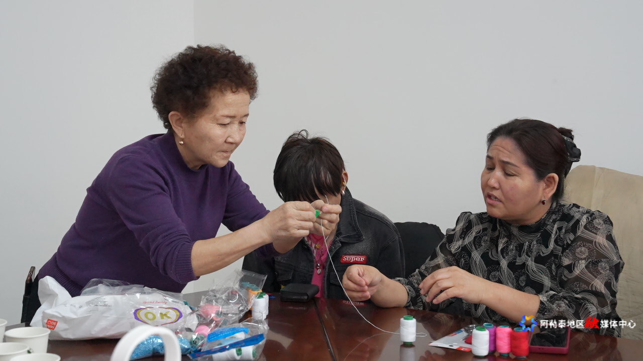 在吉木乃县残联设立的残疾人就业小作坊制作中心,残疾人靠着技能增收。这个集创业、生产、销售于一体的平台,成了他们的“温馨港湾”。基地开设有手工艺品制作等项目,还提供免费培训。