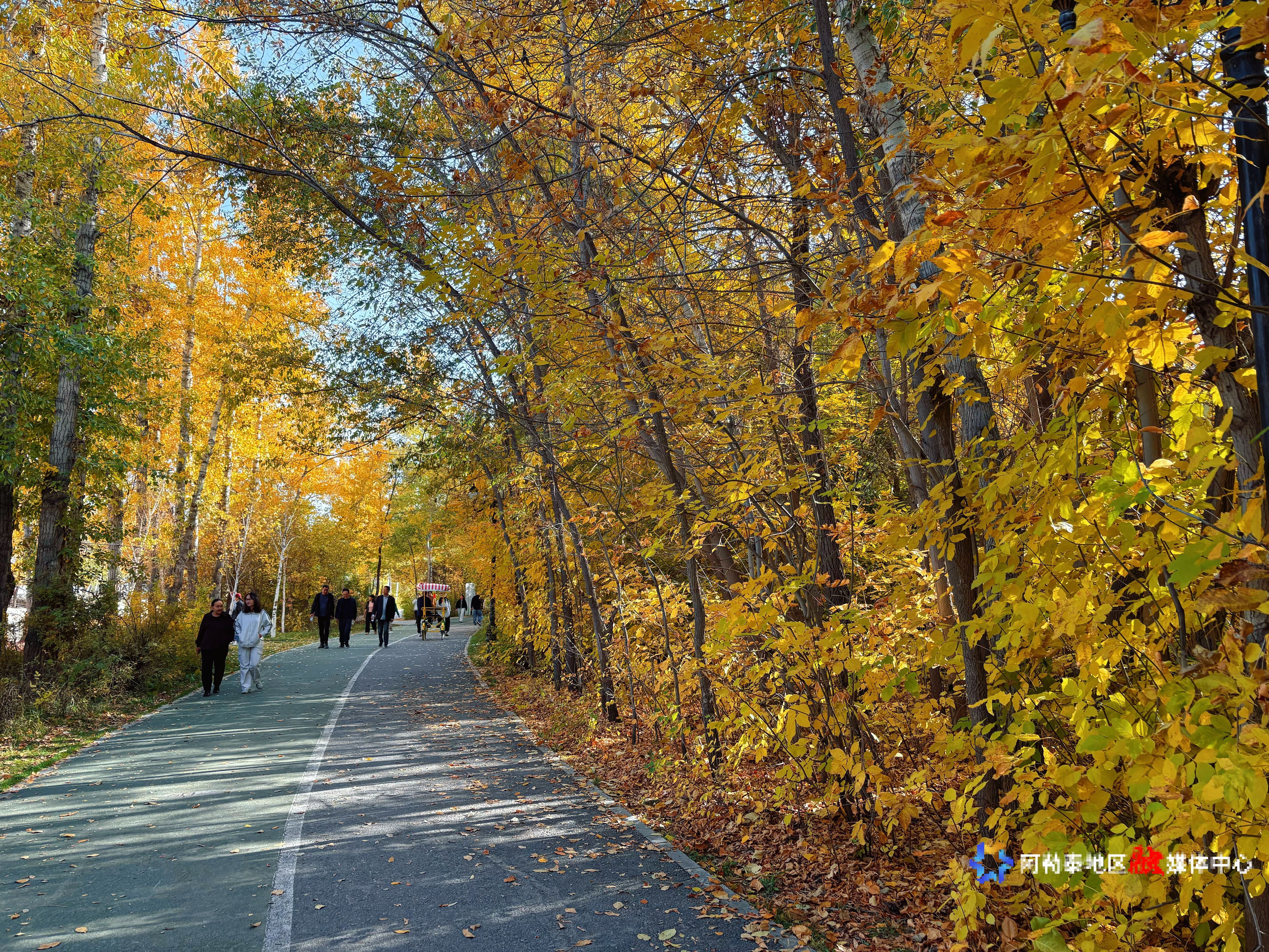层林尽染秋意浓 阿勒泰市桦林公园醉游人