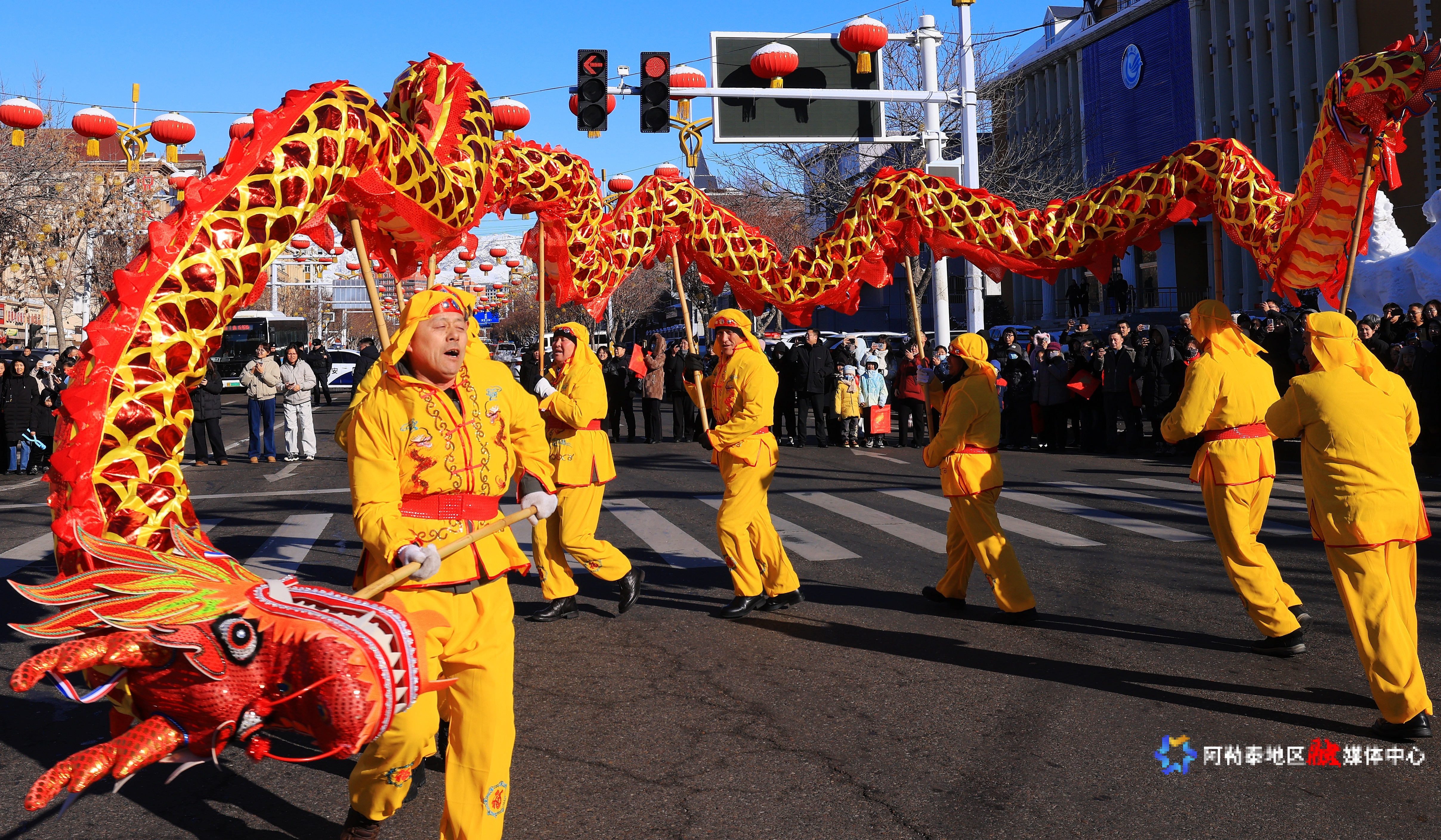 2月14日,阿勒泰市“雪都阿勒泰·社火迎新春”社火表演活动火热上演。记者 阿尔达克·拜斯汗摄