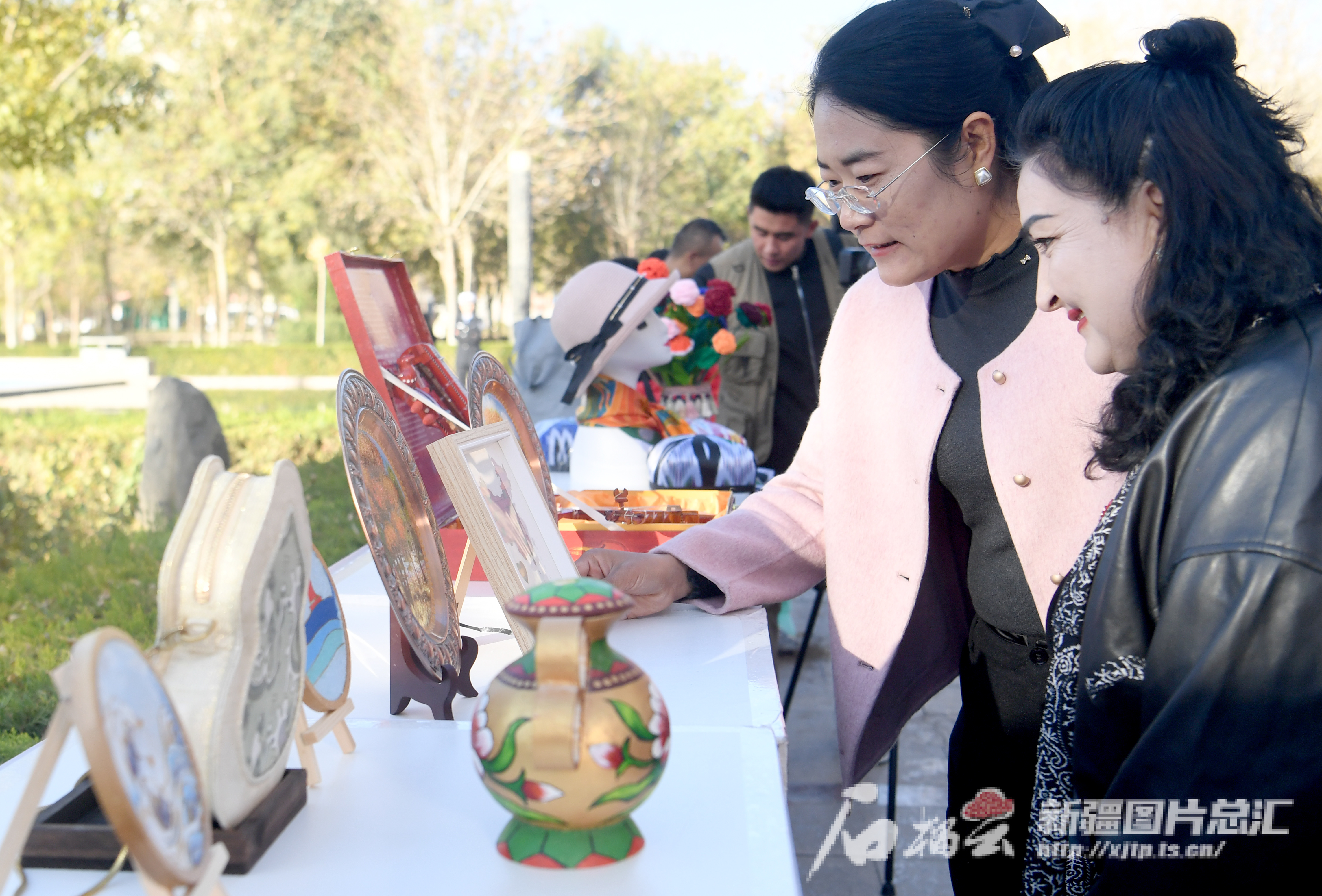 10月26日,游客在2024新疆巴州若羌且末红枣节开幕仪式上欣赏文创产品。 天山网-新疆日报记者 韩亮摄