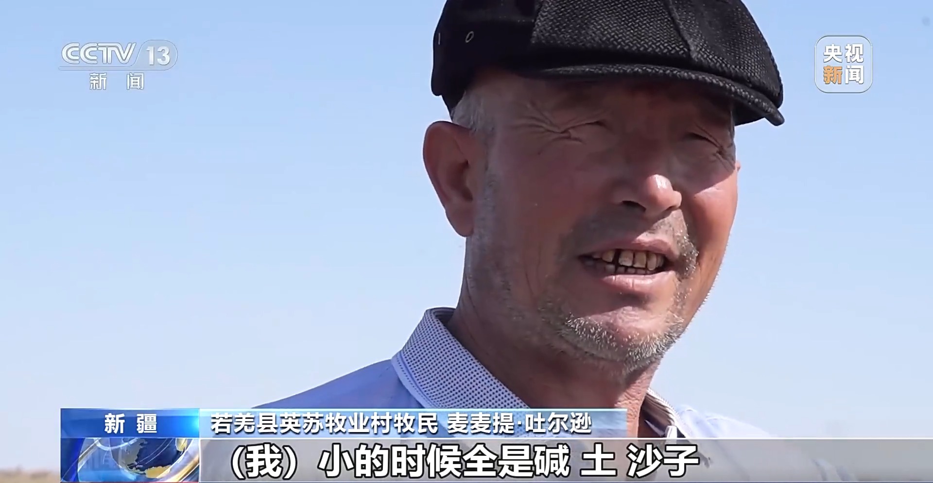 若羌县英苏牧业村牧民 麦麦提·吐尔逊:我小的时候全是碱、土、沙子,人走都走不动。羊没水,也没草,死在这个地方了。
