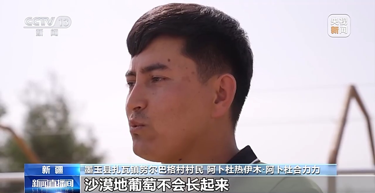 墨玉县扎瓦镇努尔巴格村村民 阿卜杜热伊木·阿卜杜合力力:别人说你们是傻子吗,你们脑子有问题,沙漠地葡萄不会长起来。